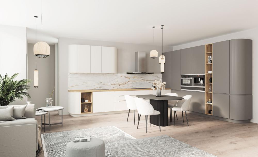 Флорида создана, чтобы воплотить в себе актуальные тенденции архитектуры и дизайна, отразить активный, динамичный, и потому постоянно меняющийся образ жизни современного человека. Это манифест кухни, которая перестала быть обособленной, освободилась от оков внутренних перегородок и распространила свое влияние на зону столовой и гостиной, став ее безусловной доминантой. Особенностью модели «Флорида» является фрезерованная по всей ширине фасада ручка «J», что позволяет делать фасады практически любого нестандартного размера. В образе Флориды нашли воплощение черты модного стиля минимализм, где строгие, геометрические линии форм сопровождает минимальное количество деталей, цветовых сочетаний и материалов.