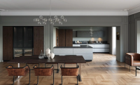 Модель «НИЦЦА» выполнена в ярком ультрасовременном дизайне. Её отличительной чертой является чёткая геометрическая точность всех линий. Фасады могут быть облицованы акриловым, глянцевым или матовым пластиком широкой палитры оттенков: от строгих монохромных до фантазийных, декорированных различными орнаментами или стилизованных под древесную поверхность.