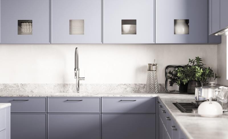 В проекте использована модель кухни Канти, алюминиевые рамки Элеганс со стеклом Флоренс.